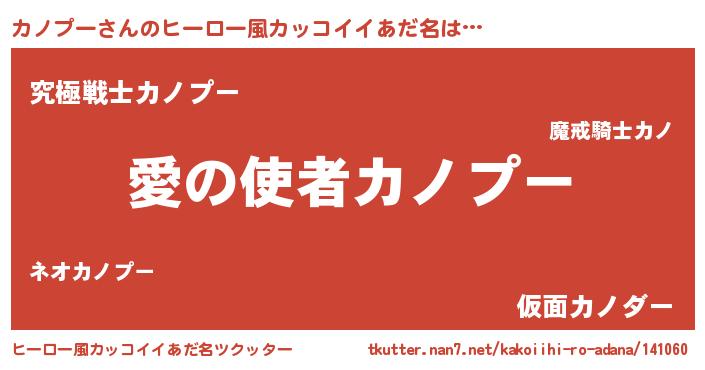 | 女子向けラノベタイトル風あだ名 | 『カノプー恋絵巻』 |