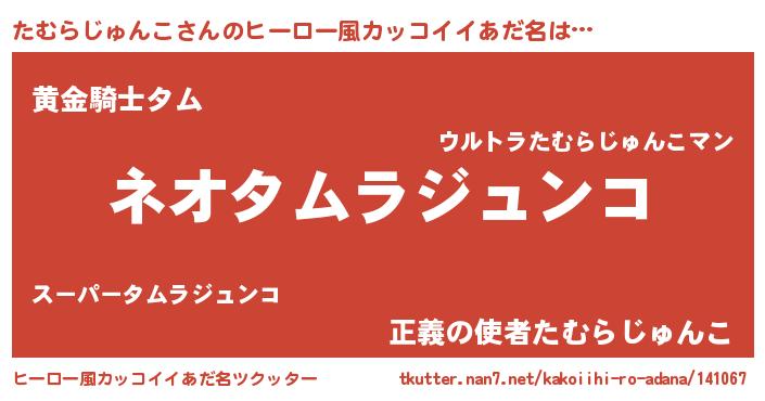 | 女子向けラノベタイトル風あだ名 | 『たむらじゅんこの契約王妃』 |