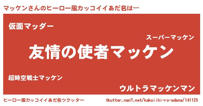 | 男性向けラノベタイトル風あだ名 | 『おまえをオタクにしてやるから、俺をマッケンにしてくれ! 』 |