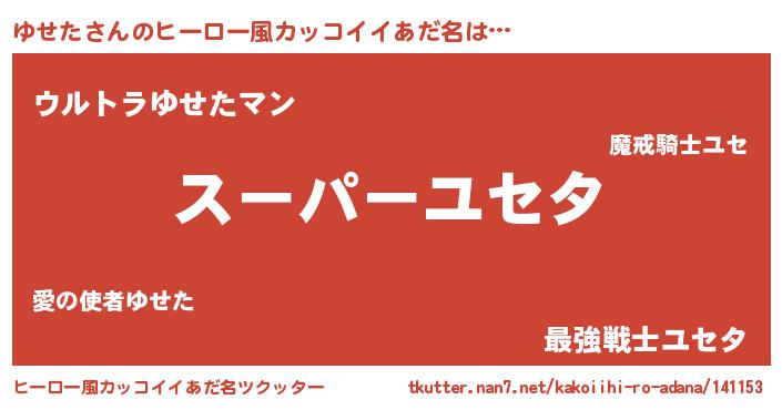 | 男性向けラノベタイトル風あだ名 | 『転生したらゆせただった件』 |