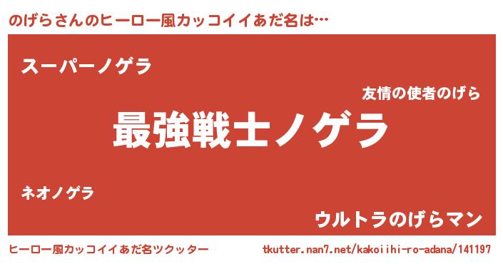| 男性向けラノベタイトル風あだ名 | 『のげらに滅ぼされるだけの簡単なお仕事です』 |