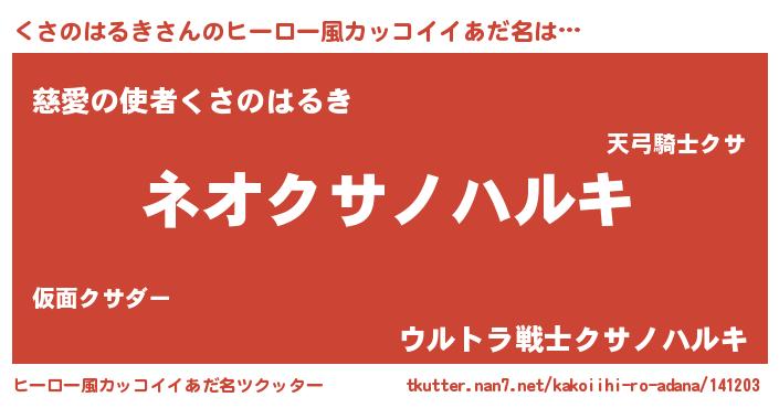 | ヘコむあだ名 | 『くさのはるき(小並感)』『くさを』 |