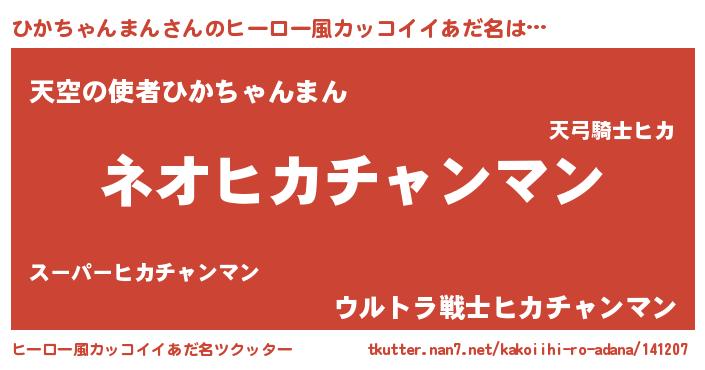 | 伝説のあだ名 | 『古文書に記された勇者ひかちゃんまん』 |