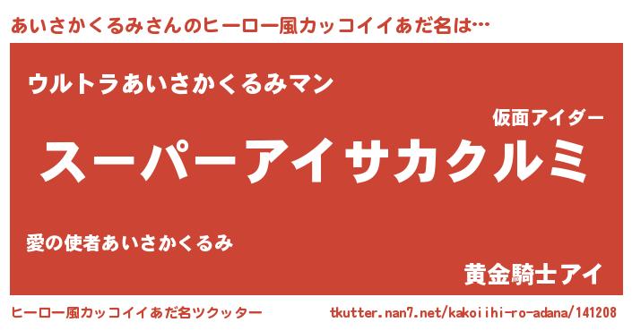 | 胡散臭い通販商品みたいなあだ名 | 『必ず成功するブレスレット…その名も「あいさかくるみ」』 |