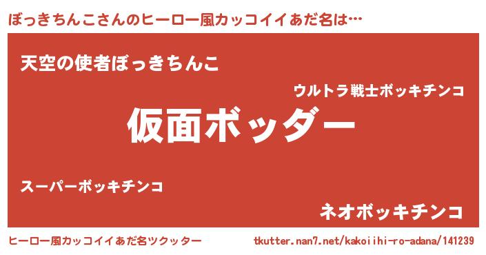 | 意味不明あだ名 | 『住所不定無職ぼっきちんこ(39歳)』 |