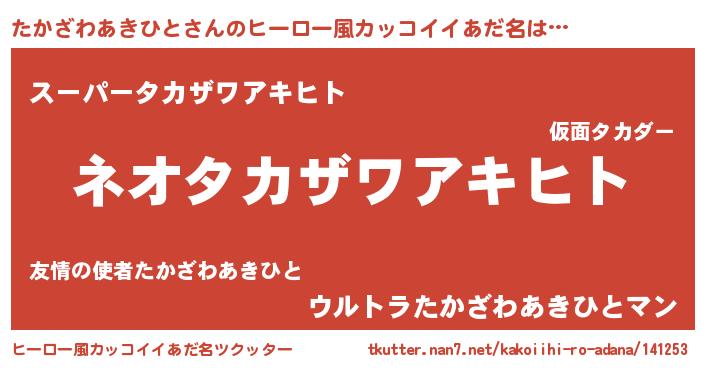 | ヘコむあだ名 | 『たかざわあきひと(笑)』『たかにゅー』 |
