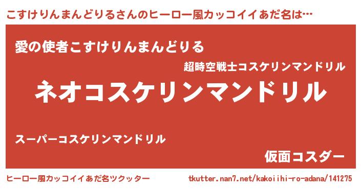 | 胡散臭い通販商品みたいなあだ名 | 『来世でも幸せになれる招き猫…その名も「こすけりんまんどりる」』 |