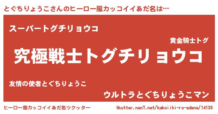 | ヘコむあだ名 | 『とぐふぇ~』『酢こんぶ』『とぐお』 |