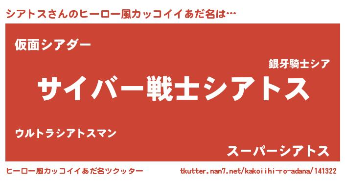 | 男性向けラノベタイトル風あだ名 | 『魔法科高校のシアトス』 |
