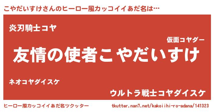 | 男性向けラノベタイトル風あだ名 | 『おまえをオタクにしてやるから、俺をこやだいすけにしてくれ! 』 |
