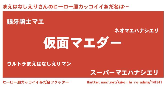 | 意味不明あだ名 | 『住所不定無職まえはなしえり(53歳)』 |
