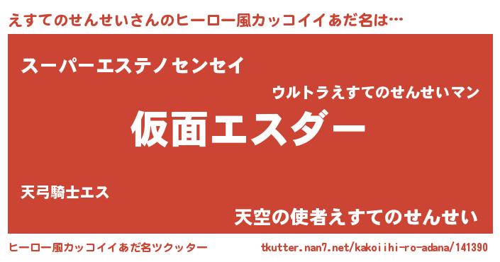 | 意味不明あだ名 | 『住所不定無職えすてのせんせい(11歳)』 |
