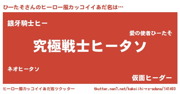 | 意味不明あだ名 | 『自称ひーたそ』『なめこ科ひーたそ属』 |