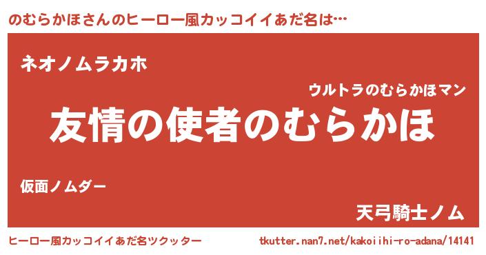 | 女子向けラノベタイトル風あだ名 | 『シンデレラのむらかほ家の靴箱館』 |
