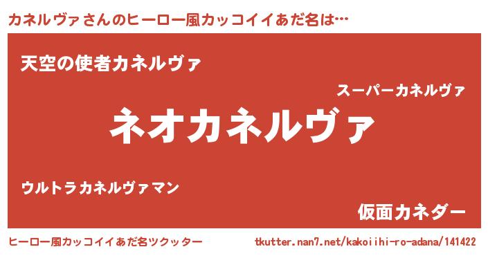 | 男性向けラノベタイトル風あだ名 | 『うちのカネルヴァが世界を掌握している!』 |