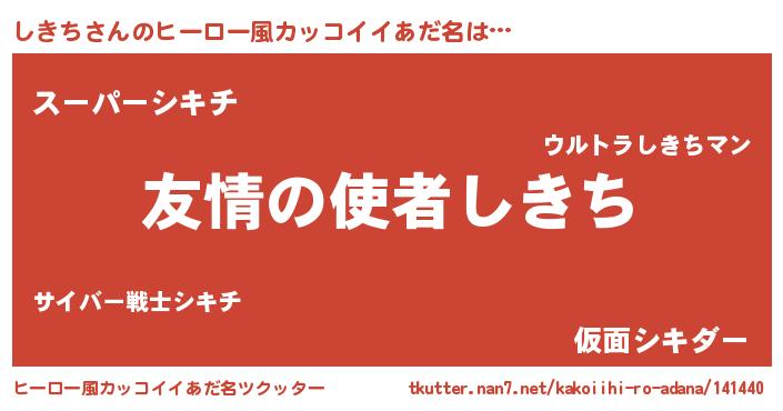 | 男性向けラノベタイトル風あだ名 | 『おまえをオタクにしてやるから、俺をしきちにしてくれ! 』 |