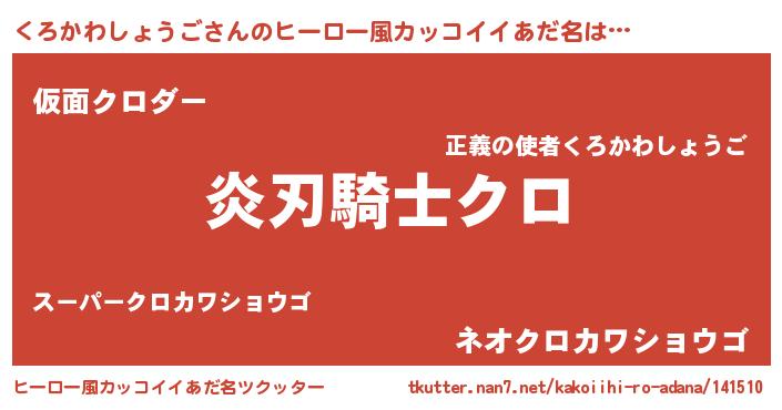 | ヘコむあだ名 | 『くろ太郎』『くろかわしょうご(笑)』 |