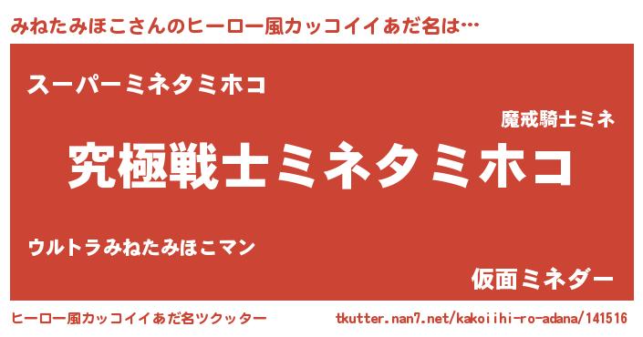 | 意味不明あだ名 | 『自称みねたみほこ』 |