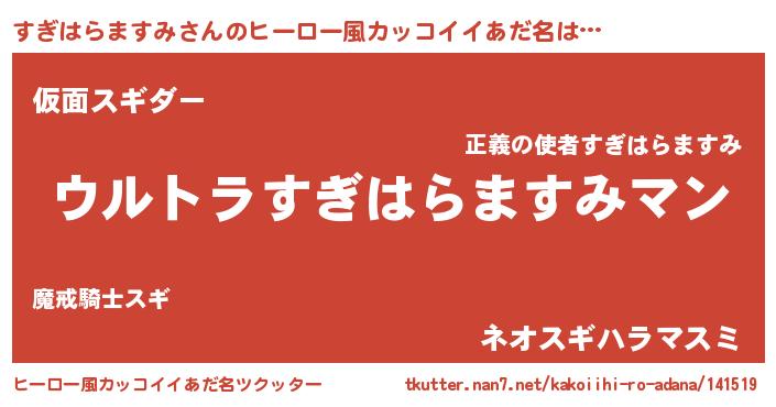 | 男性向けラノベタイトル風あだ名 | 『やはりすぎはらますみの青春ラブコメはまちがっている 』 |