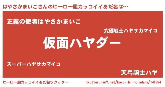 | 意味不明あだ名 | 『住所不定無職はやさかまいこ(98歳)』 |