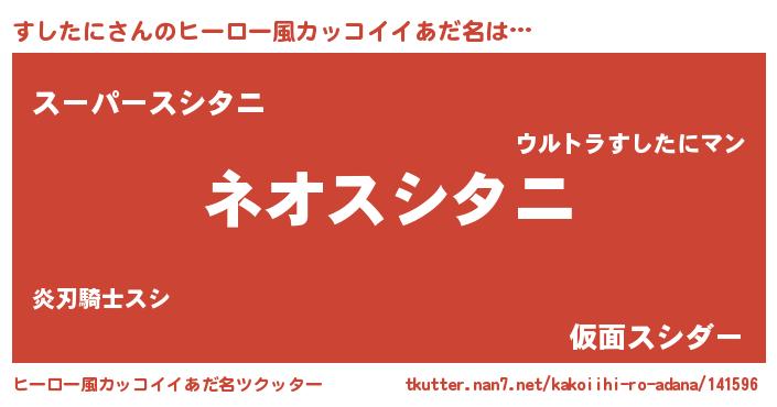 | 男性向けラノベタイトル風あだ名 | 『すしたにという概念が存在しない退屈な世界 』 |