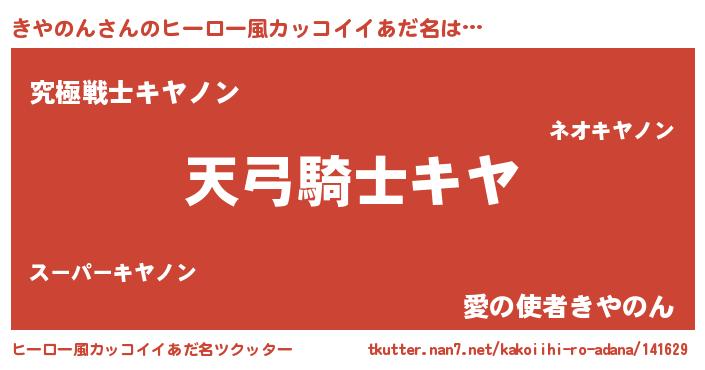 | 男性向けラノベタイトル風あだ名 | 『きやのんの嫁は女の子じゃないと思った?』 |