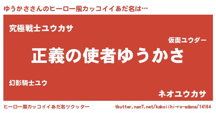 | 男性向けラノベタイトル風あだ名 | 『おまえをオタクにしてやるから、俺をゆうかさにしてくれ! 』 |