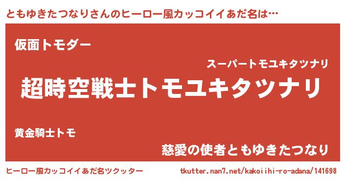| 女子向けラノベタイトル風あだ名 | 『ともゆきたつなりなんてお断りですっ。』 |