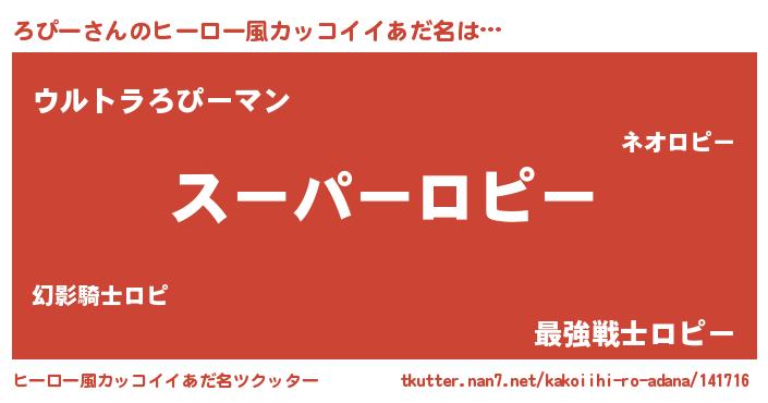 | 女子向けラノベタイトル風あだ名 | 『ろぴー姫と円卓の騎士』『闇のろぴー』 |