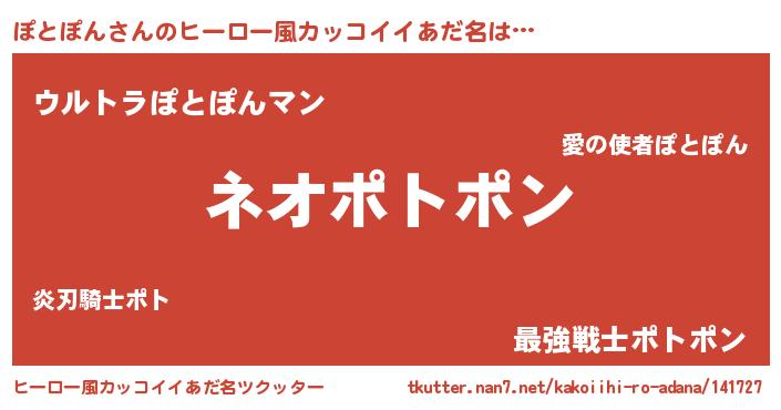 | 女子向けラノベタイトル風あだ名 | 『異世界で失敗しない100のぽとぽん』 |
