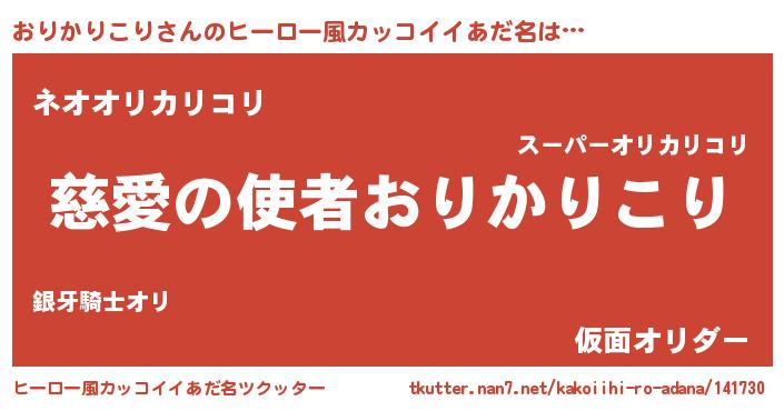 | 男性向けラノベタイトル風あだ名 | 『おりかりこりに滅ぼされるだけの簡単なお仕事です』 |