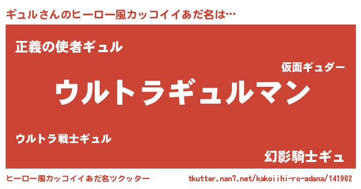 | 女子向けラノベタイトル風あだ名 | 『ギュルの雑貨屋さん』『ギュル恋絵巻』 |