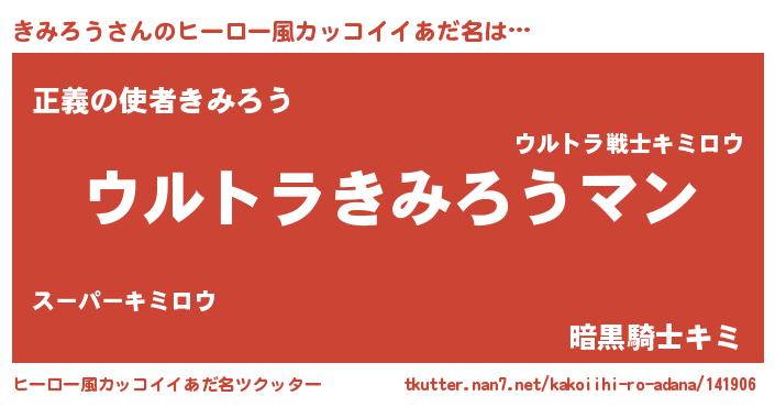 | 男性向けラノベタイトル風あだ名 | 『キミロウスレイヤー』 |