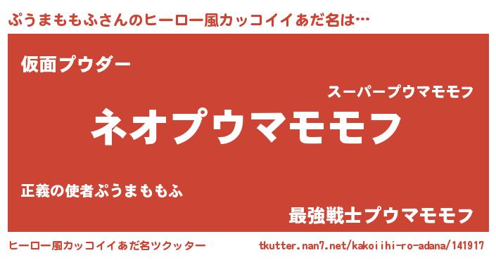 | 男性向けラノベタイトル風あだ名 | 『ぷうまももふという概念が存在しない退屈な世界 』 |