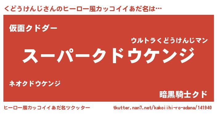 | 男性向けラノベタイトル風あだ名 | 『クドウケンジアートオンライン』 |