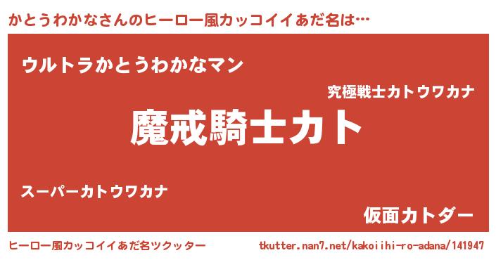 | 女子向けラノベタイトル風あだ名 | 『かとうわかなの卵を拾いまして』 |