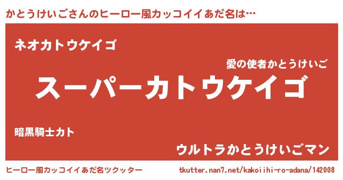 | 男性向けラノベタイトル風あだ名 | 『カトウケイゴアートオンライン』 |
