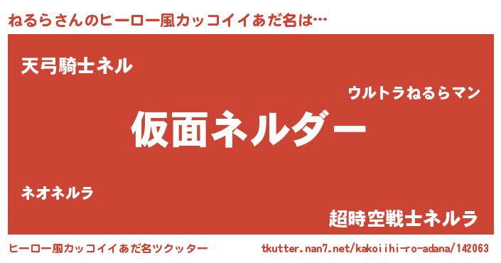 | 男性向けラノベタイトル風あだ名 | 『この素晴らしい世界にねるらを!』 |