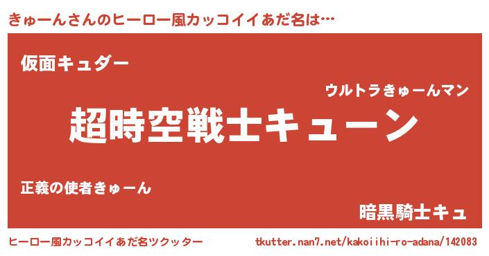 | 女子向けラノベタイトル風あだ名 | 『きゅーんなんてお断りですっ。』 |