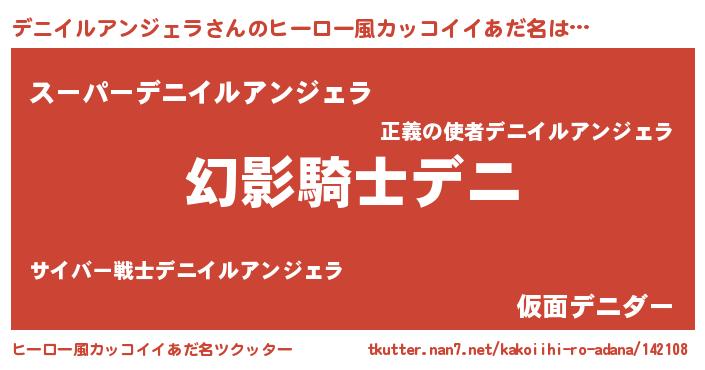 | 男性向けラノベタイトル風あだ名 | 『デニイルアンジェラの嫁は女の子じゃないと思った?』 |