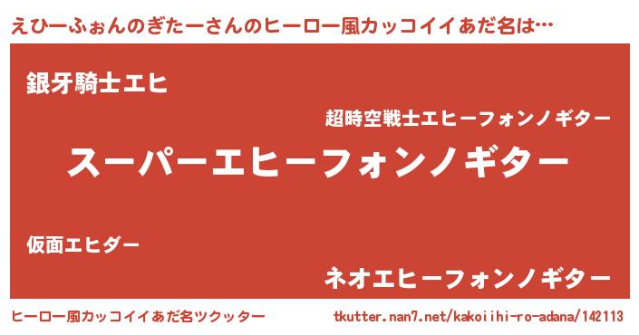 | 男性向けラノベタイトル風あだ名 | 『えひーふぉんのぎたーの憂鬱』 |