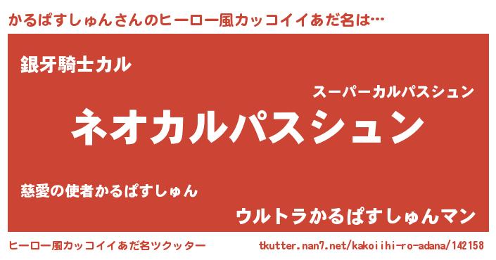 | 男性向けラノベタイトル風あだ名 | 『かるぱすしゅんという概念が存在しない退屈な世界 』 |