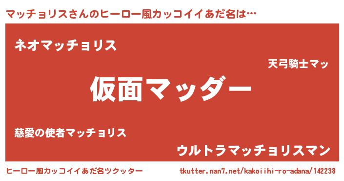 | 男性向けラノベタイトル風あだ名 | 『この素晴らしい世界にマッチョリスを!』 |
