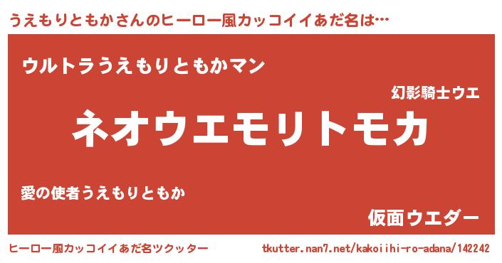 | 女子向けラノベタイトル風あだ名 | 『うえもりともかの契約王妃』 |