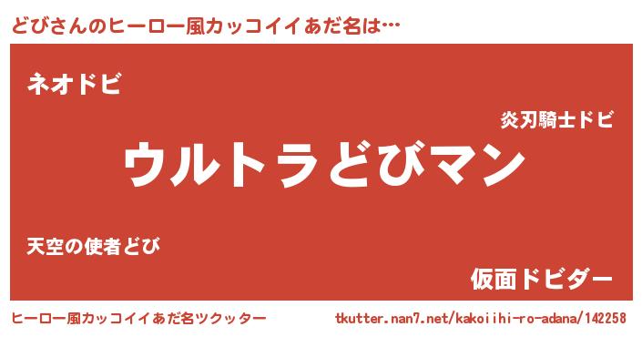 | 男性向けラノベタイトル風あだ名 | 『どび~年齢イコール彼女いない歴の魔法使い~』 |