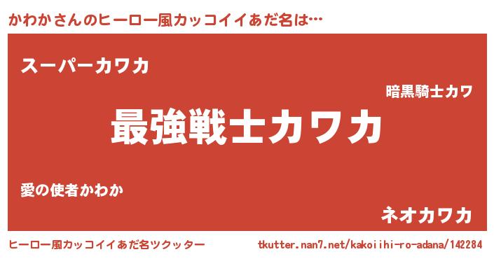| 男性向けラノベタイトル風あだ名 | 『Re:かわかから始める異世界生活』 |