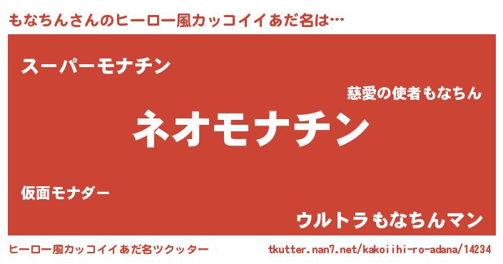 | 男性向けラノベタイトル風あだ名 | 『もなちんという概念が存在しない退屈な世界 』 |