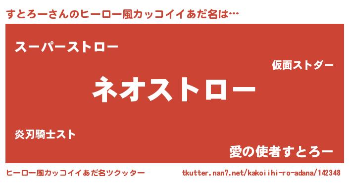 | 男性向けラノベタイトル風あだ名 | 『すとろーという概念が存在しない退屈な世界 』 |