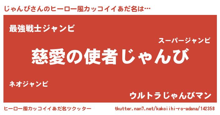 | 男性向けラノベタイトル風あだ名 | 『じゃんび~年齢イコール彼女いない歴の魔法使い~』 |