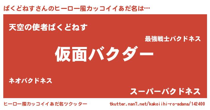 | 胡散臭い通販商品みたいなあだ名 | 『あなたにだけ特別に提供する世界で10本だけ現存している希少なブランデー…その名も「ばくどねす」』 |
